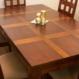 Dining furniture designs are plain in appearance, stripped to bare essentials (few turnings, no decorations), featuring natural materials; no ornamentation; strong emphasis on function.